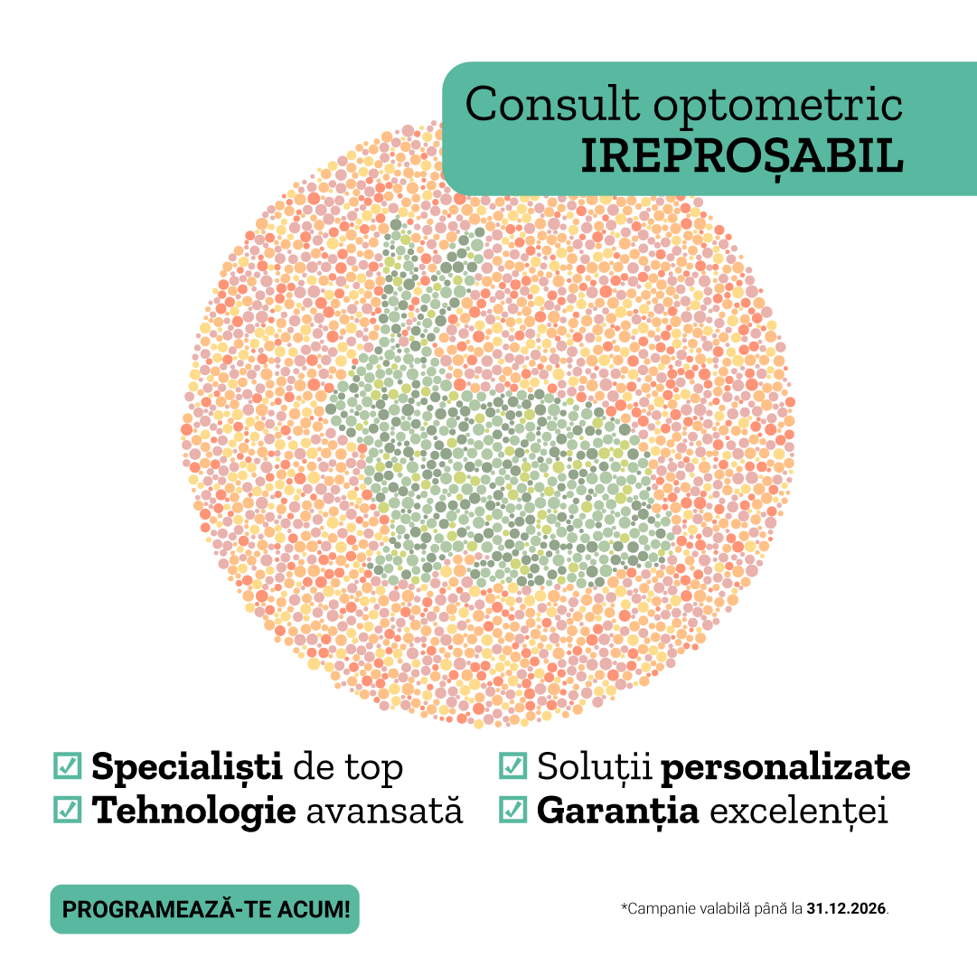 Consultul este gratuit, fara a fi conditionat de achizitionarea ochelarilor de la noi. Iar daca doresti sa-ti iei si ochelarii de aici, gasesti mereu reduceri substantiale la ramele pentru ochelarii de vedere.